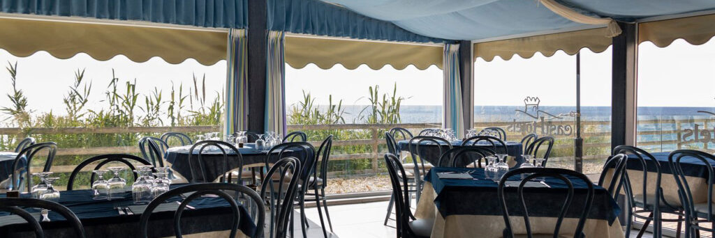 Il ristorante è composto da una sala interna e di un’area esterna per i periodi estivi vista sul mare, con gli spettacolari scorci della Punta Imperatore da un lato e gli Scogli Innamorati dall’altro.