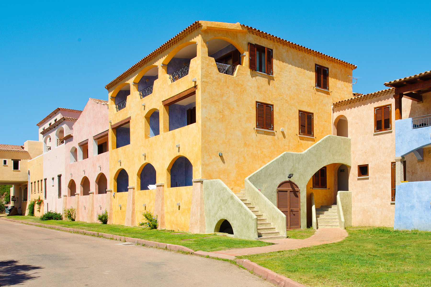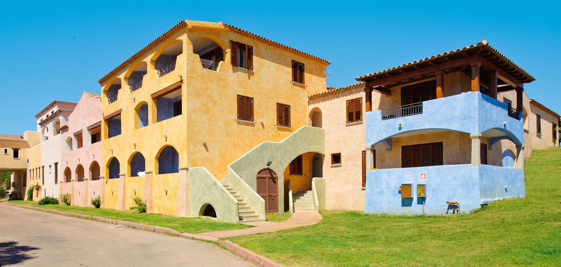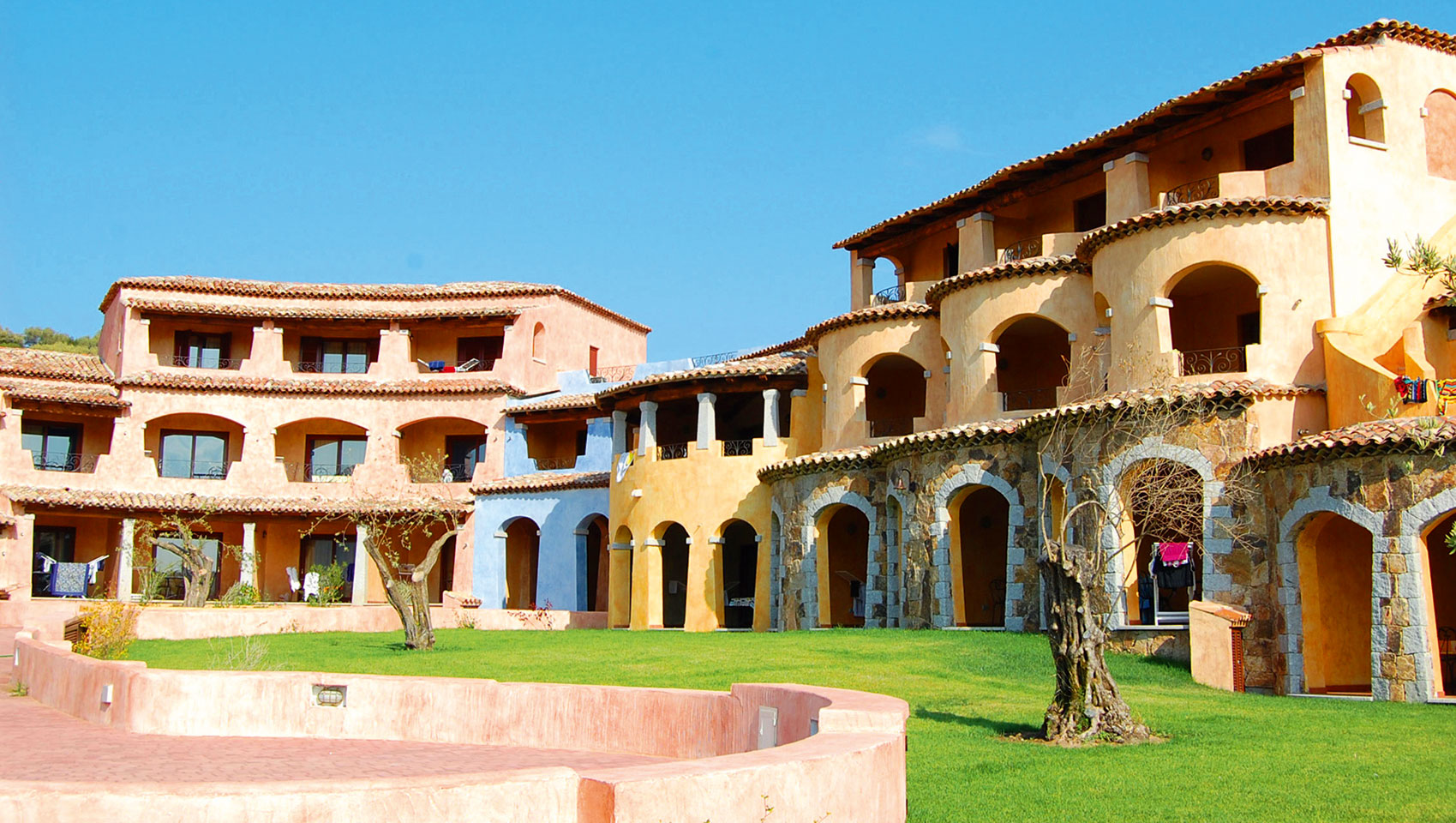 La struttura è caratterizzata da esclusive e prestigiose schiere di costruzioni particolarmente curate collegate tra loro da vialetti in pietra, verdi giardini curati e portici realizzati in cotto, granito e legno pregiato che si raggruppano intorno alla graziosa piazzetta dove sorge una piccola e suggestiva chiesetta oltre all’ufficio ricevimento ed alcune attività commerciali.